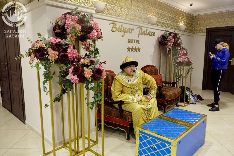 Вариант, предложенный «Загадками Казани» решал наши вопросы. Сюжет игры обыгрывал городскую легенду о сокровищах Казанского Ханства, участников встречал Иван Грозный и просил отыскать сокровища. Для каждой из шести команд был разработан индивидуальный маршрут, захватывающий основные достопримечательности исторического центра Казани: Старо-татарской слободы, района Кукольного театра, улицы Петербургской, набережной озера Кабан. В качестве точки питания во время игры нам было предложено органично включить в сюжет квеста конкурс по дегустации национальных блюд. В одном из старинных татарских домов участников встретила ведущая в национальном костюме, на столах стояли блюда татарской кухни: чак-чак, талкыш калеве, губадия, эчпочмак, трехслойник, татарский чай. Во время конкурса частники узнали много нового о татарской кухне, традициях чаепития и национальном костюме. Также на пути участников встречали костюмированные персонажи, добавляющие национального колорита в игру.