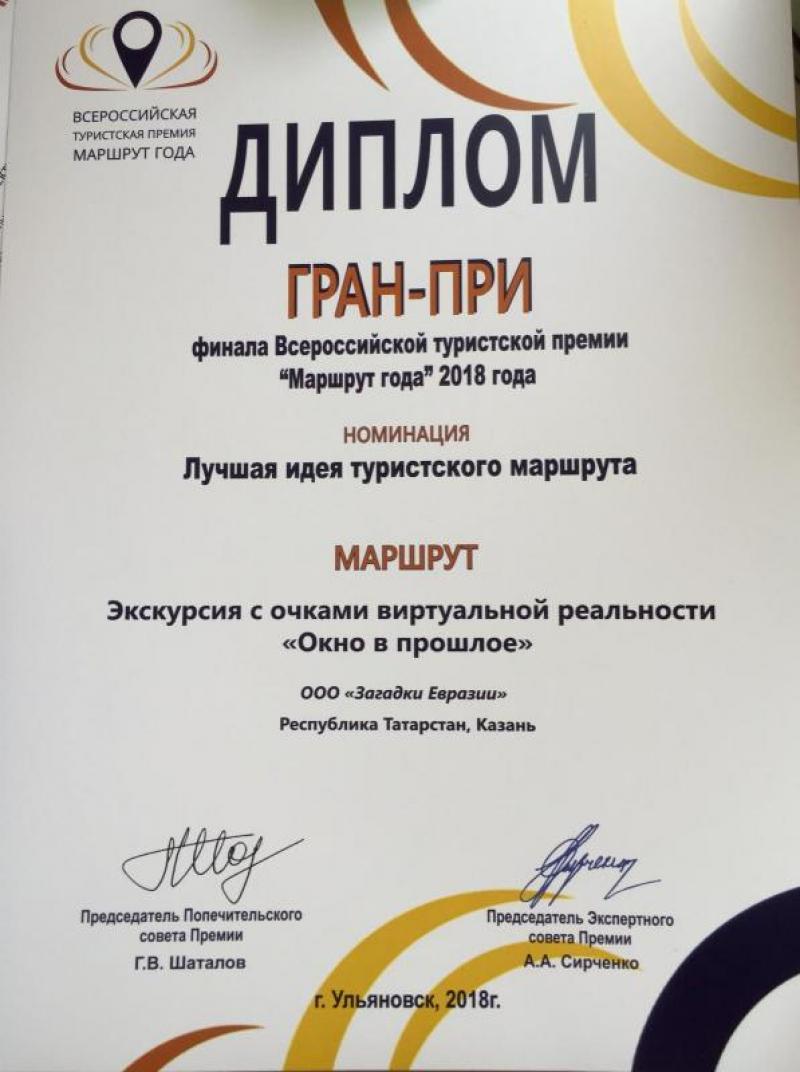 Экскурсия стала победителем Всероссийской туристической премии "Маршрут Года 2018": Гран-при в номинации "Лучшая идея маршрута".