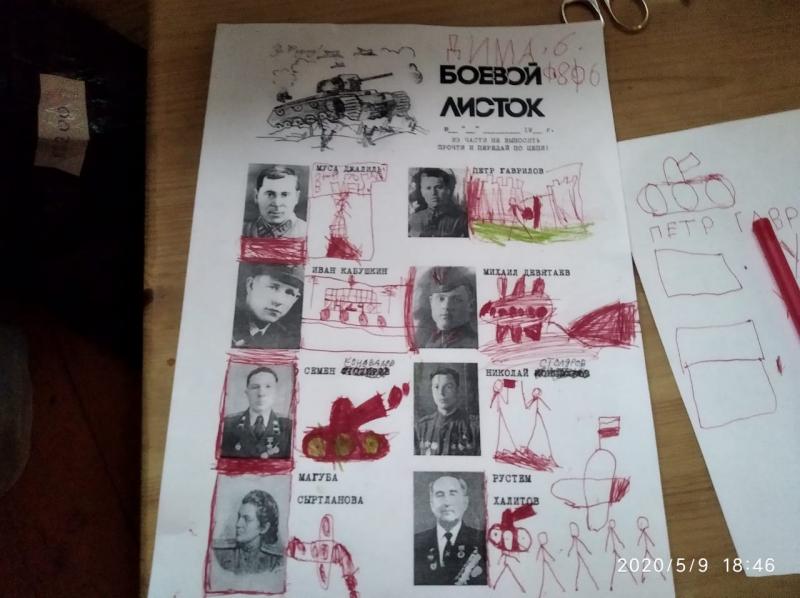 Ребята становятся помощниками военного корреспондента и заполняют "боевые листки" - в них заносятся сведения для будущей фронтовой газеты.