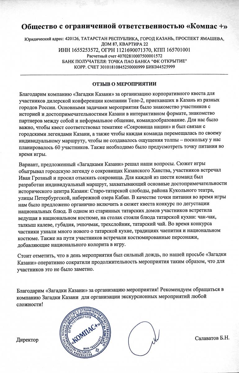 Благодарим «Загадки Казани» за организацию мероприятия! Рекомендуем обращаться в компанию Загадки Казани  для организации экскурсионных мероприятий любой сложности!