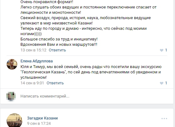 Юля и Тимур, мы всей семьёй, очень рады что посетили вашу экскурсию "Геологическая Казань", по сей день под впечатлениями об увиденном и услышанном!